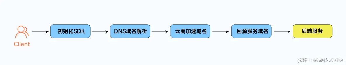 - DNS域名解析:SDK 初始化之后,拿到柔性配置中的域名开始进行域名解析