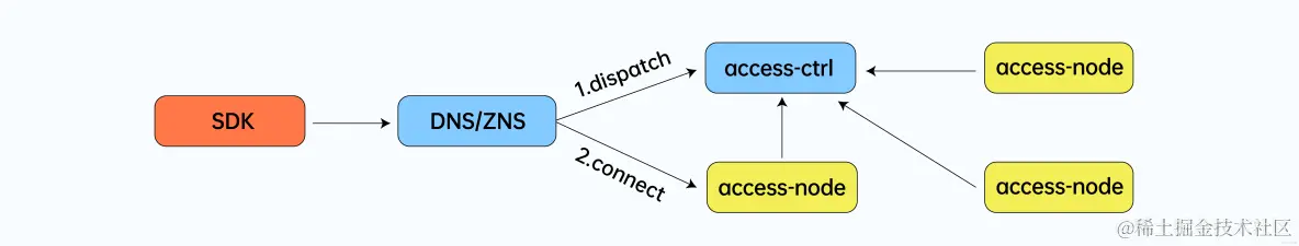 - access-ctrl:主要提供统一调度的能力,根据端侧的客户端 IP 调度返回符合客户端最佳接入的统一接入节点。
