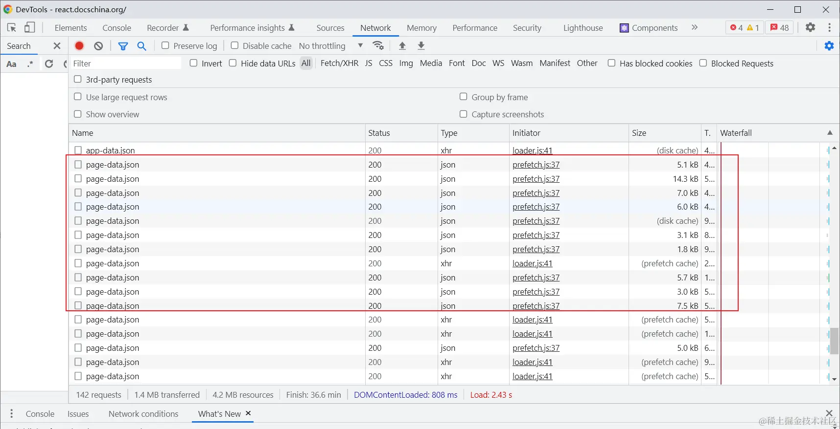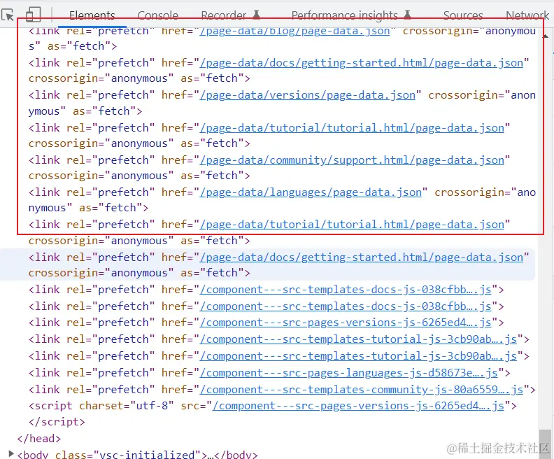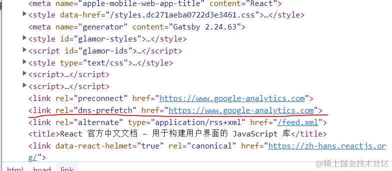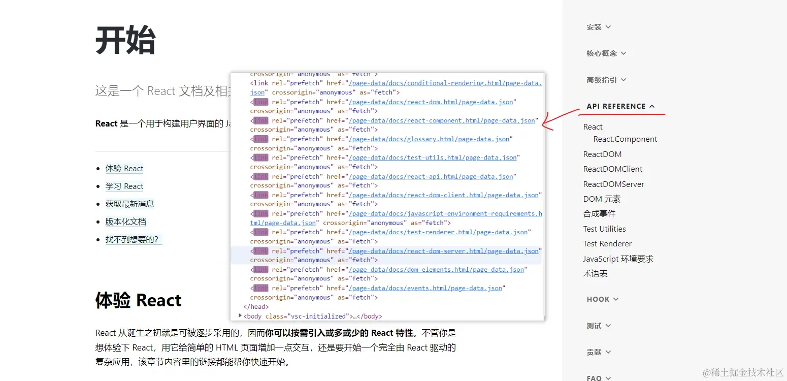 可以看到 react文档在项目中大量使用到了 prefetch来优化项目