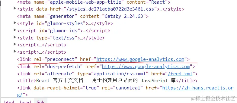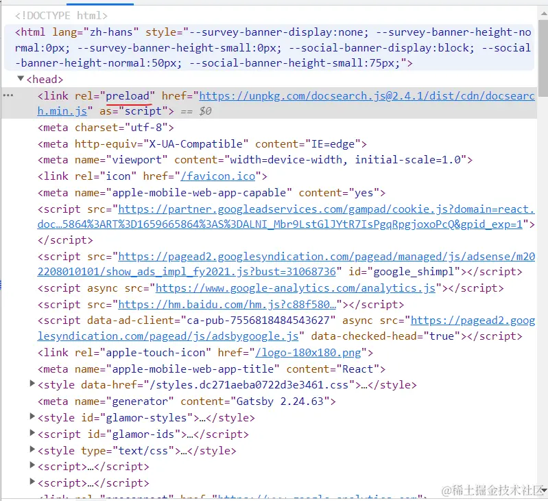 下面是 react文档中对 preload关键字的使用,告诉浏览器等等可能需要这个资源,希望能够尽早下载下来