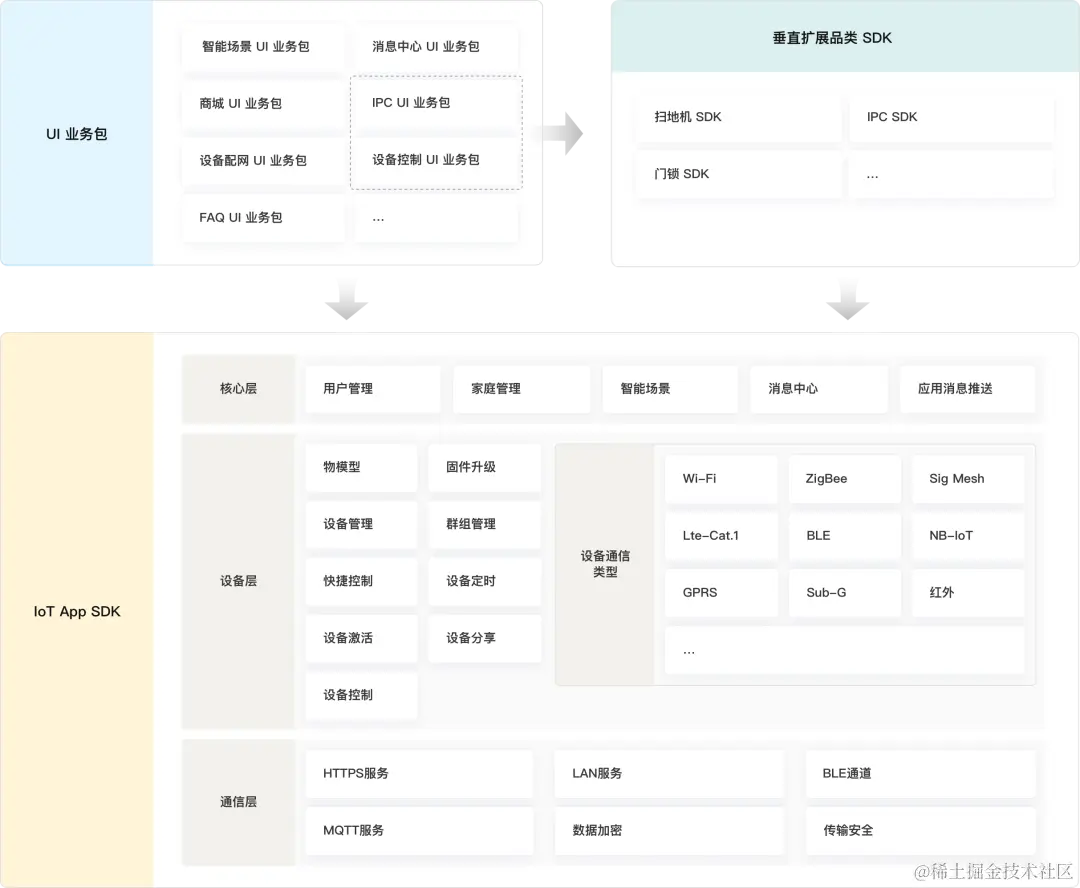 UI 业务包主要包含:设备控制、设备配网、App 商城、智能场景、消息中心、设备详情。
