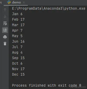 # 迭代月份对应的日期