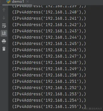 因为这是C类地址,数学稍微好点的肯定手到擒来,但是我给你一个IPv6或者IPv4的A类地址,能口算出来多少的恐怕很少吧,而ipaddress库可以直接遍历打印,示例如下: