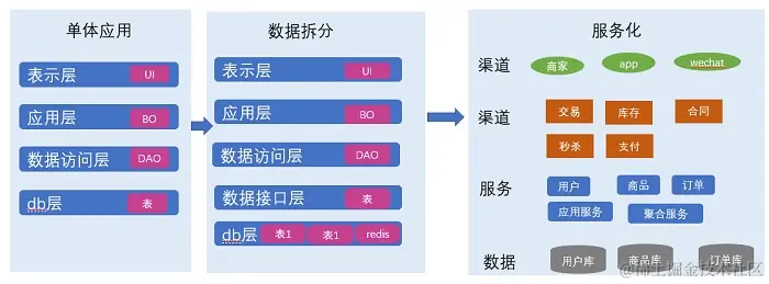 架构演进路程:单体应用→分布式应用服务化→微服务