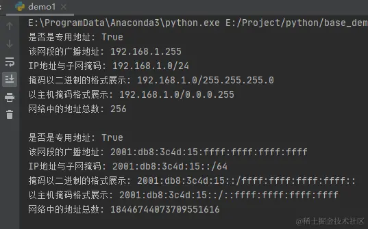 print("是否是公网地址:", address.is_global)