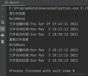 很简单,就一行代码,第1个参数是需要copy的源文件,第2个参数是需要复制的新文件。运行之后,效果如下: