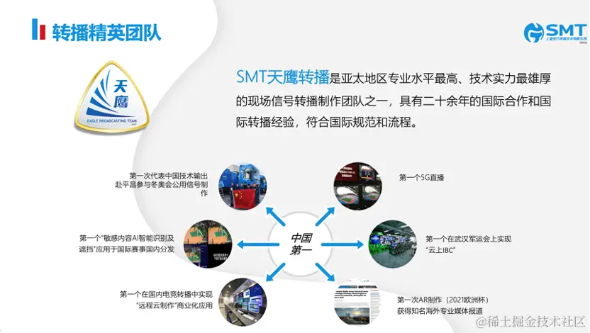 再回到我自己所在的团队——SMT天鹰转播是专注于转播的团队,具有二十余年的国际合作和国际转播经验。