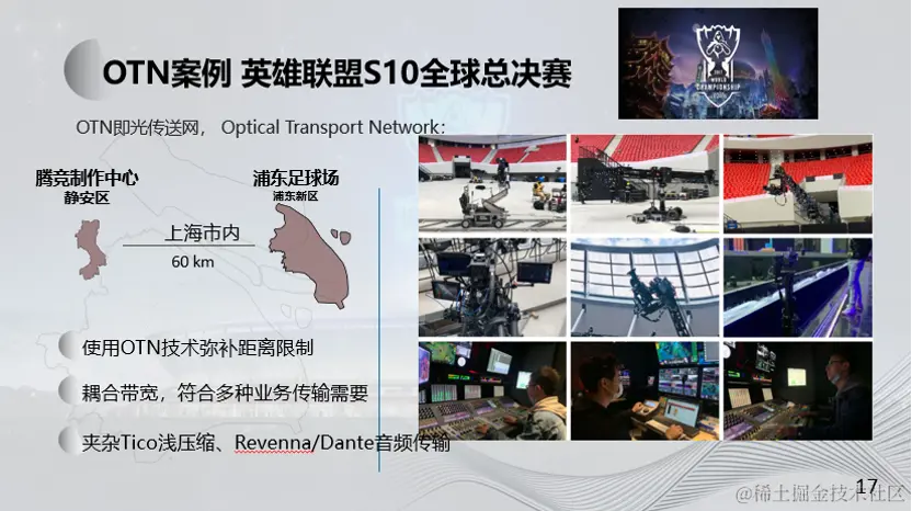 S10全球总决赛在上海的浦东足球场进行,但它的制作是在腾竞体育播出制作中心,两者之间相距大概六十公里。由于这是一个世界性的电竞赛事,其信号传输规模非常的庞大。