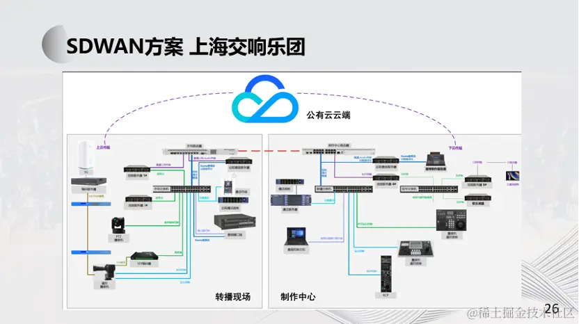 为了在公网中实现更为广泛的远程制作功能,实现更为复杂的组网和信号传输,特别是实现结合云计算平台的远程制作,我们开始探索在远程制作中引入SD-WAN组网技术。