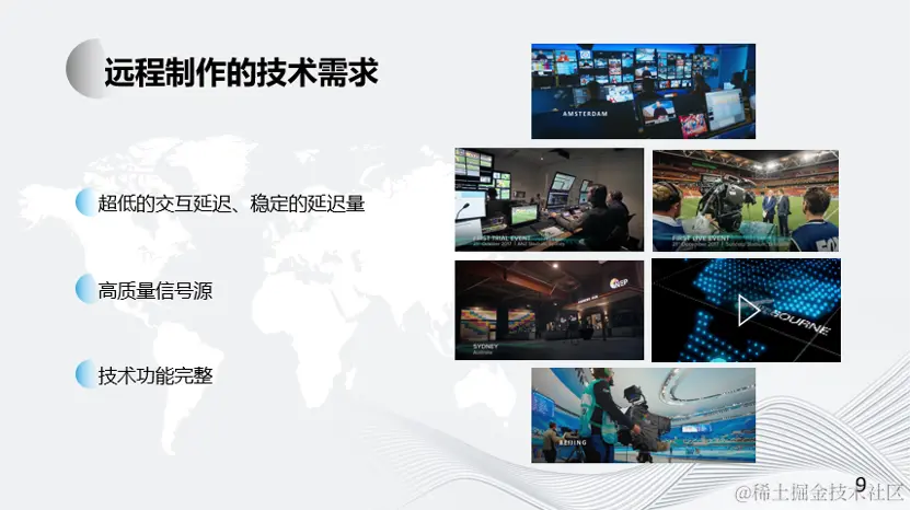 说到远程制作,在世界范围的任何地方、任何角落,要采用远程制作的方式,除了解决信号传输、控制、处理, 还需要解决远距离控制延时,信号质量,信号延时等问题,目前的跨城区、跨国家的远程模式或多或少会存在一 些技术点没有解决,要在制作上进行一定的妥协。随着技术的发展,远程制作模式也随时在进行着技术上的革新。