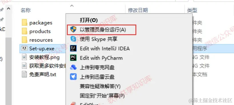 2.选中【Set-up】鼠标右击选择【以管理员身份运行】。