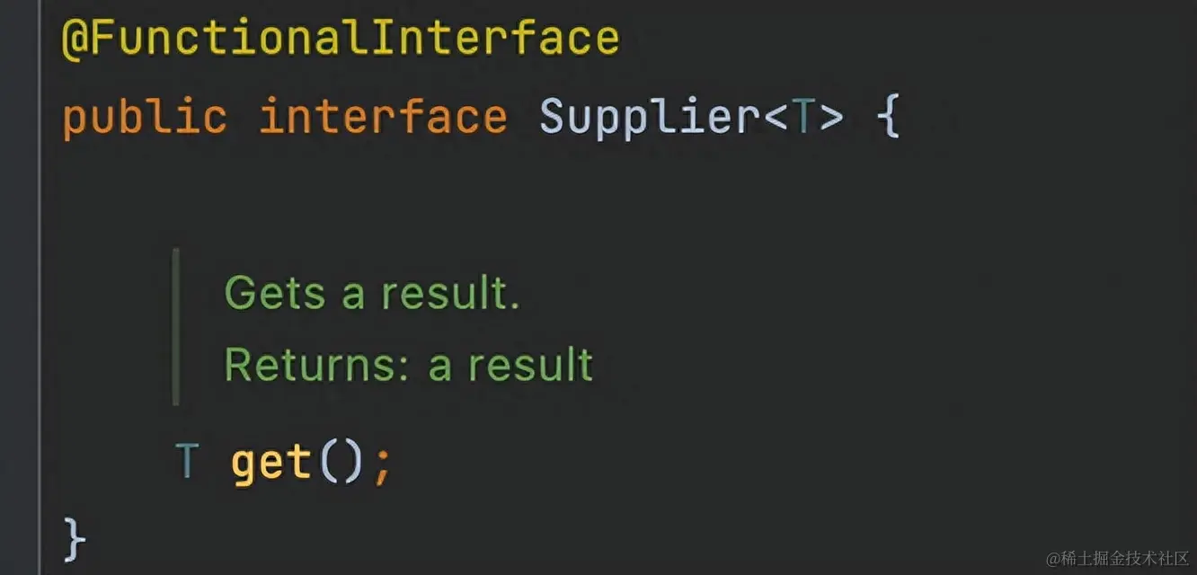 Supplier 接口代表一个生产者,它不接受任何参数,但返回一个值。这在需要生成一些数据或对象时非常有用。