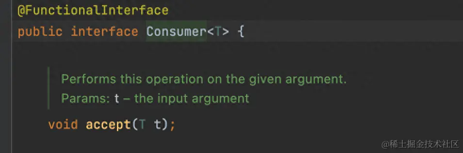 通常用于表示接受一个输入类型(T)的操作,但没有返回值。这在需要执行一些操作而不需要返回值时非常有用,如打印元素或将元素存储在外部数据结构中。它可以用于迭代列表并执行某些操作,例如,对每个元素执行某个操作。