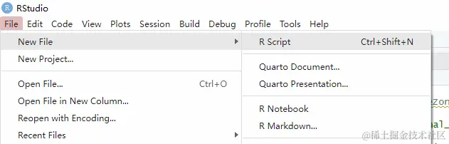 接下来,我们即可开始代码的撰写。在这里,我们最好通过如下的方式新建一个R语言脚本(我这里是用的RStudio);因为后期执行算法的时候,我们往往需要对比多种不同的参数搭配效果,通过脚本来运行代码会比较方便。