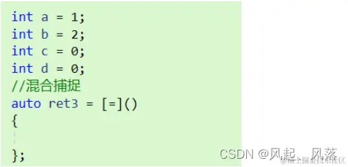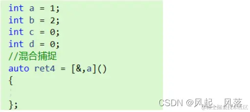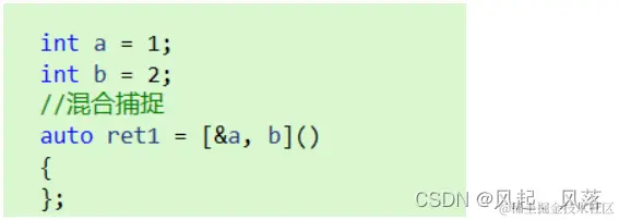 若想用外面域的变量,则需要捕捉, 捕捉多个值,用逗号分割由于是传值捕捉,所以捕捉过来的a和b是外面的拷贝,是无法改变的
