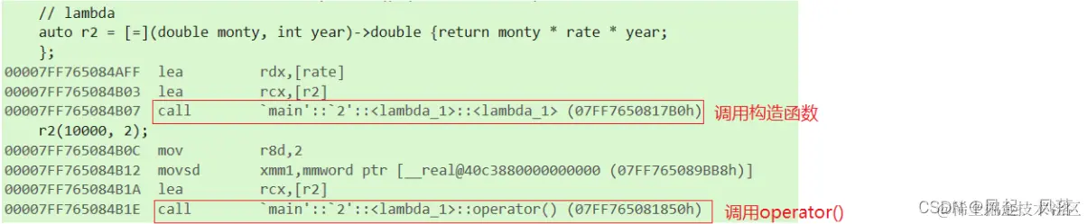 仿函数汇编的调用与lambda汇编的调用都是先调用构造函数,在调用operator(),说明lambda底层就为仿函数实现的
