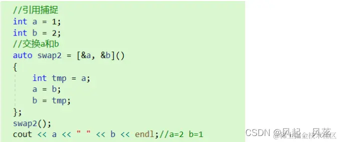 使用引用的方式,即可通过修改捕捉后的a和b,来影响本身 的值进行修改
