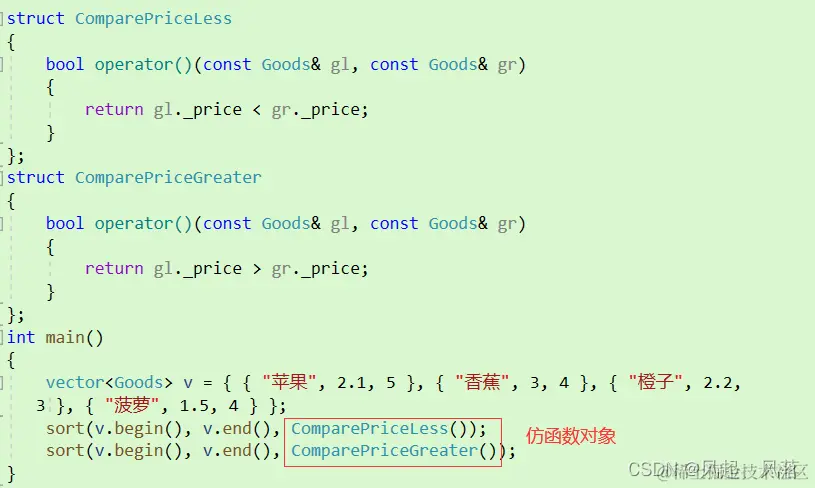 在C++中,使用仿函数可以进行 价格的比较 若不看仿函数具体实现,则无法通过仿函数对象 来知道 该仿函数到底是怎么比较的 所以就提出了lambda表达式