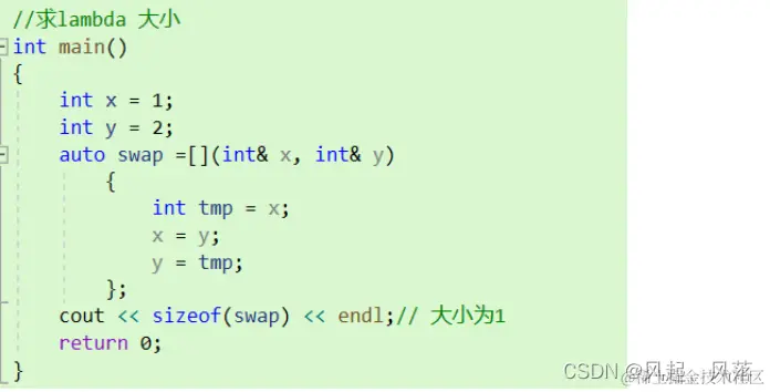 根据仿函数,生成仿函数的类,由于仿函数的类是空类 ,所以为1字节 即lambda对象为1字节