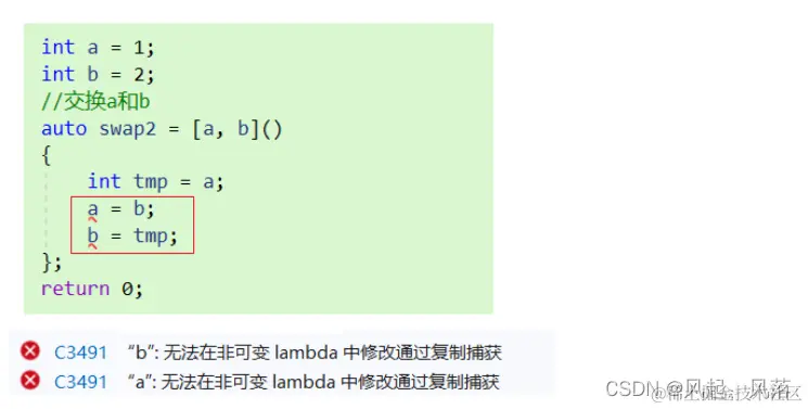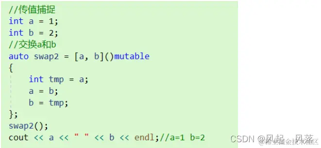 加入mutable 异变,即可修改传值捕捉所过来的a和b