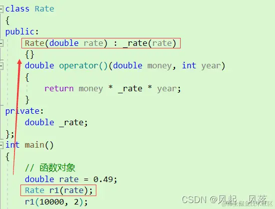 先调用构造函数,使r1成为仿函数对象 再调用rate类中的operator()