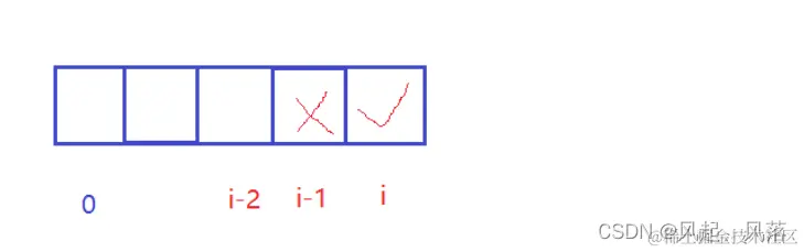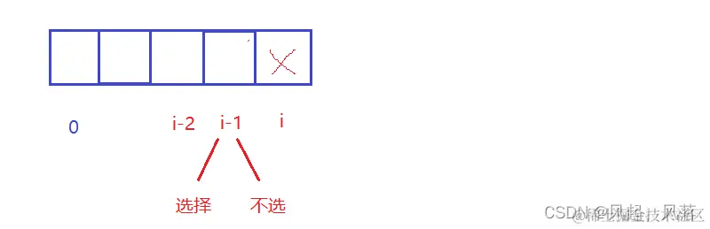 若i位置没有被偷取到 nums[i]的值,则i-1位置分为两种情况: