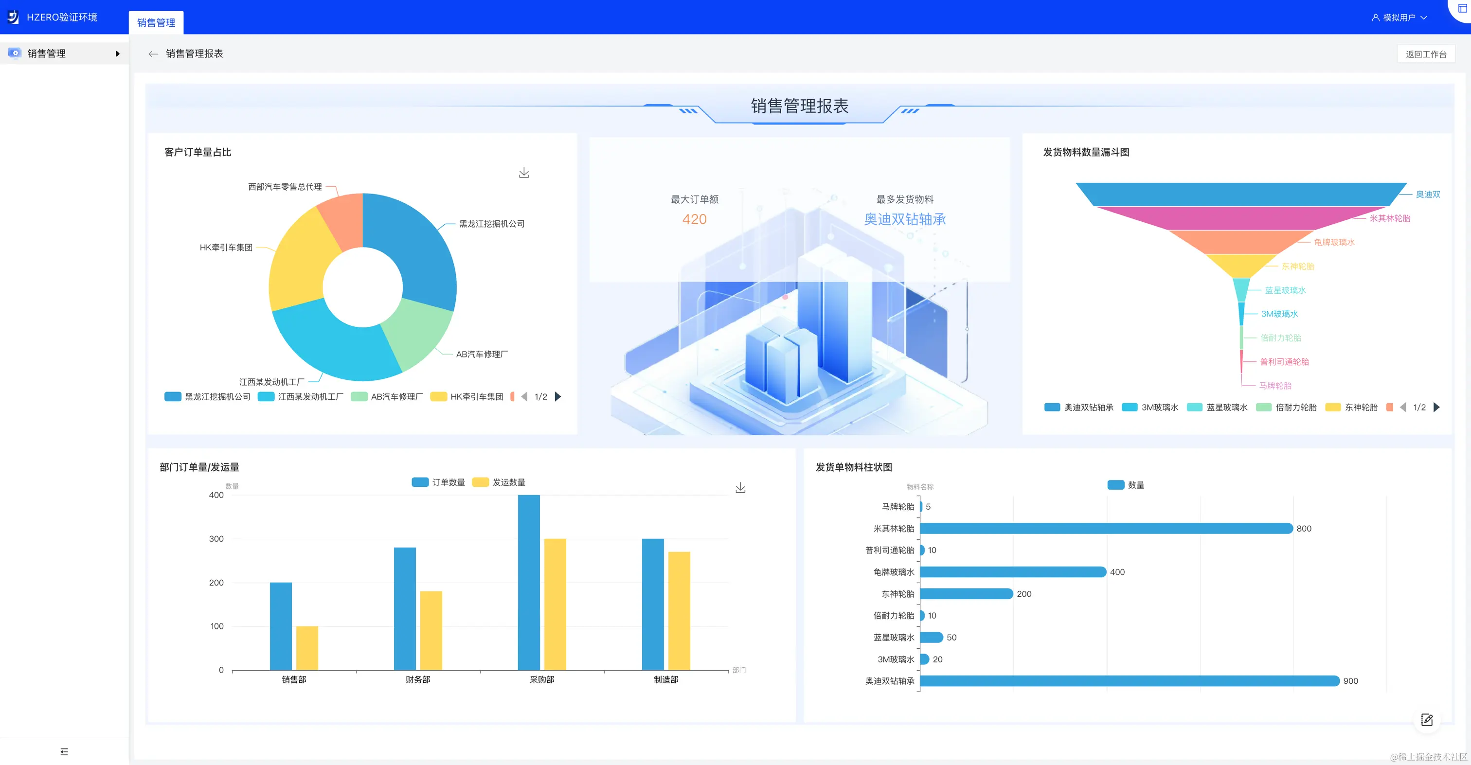 快速展示最多发货物料和最大订单额数量,以便对业务情况进行快速了解。指标卡的功能是以简洁明了的方式展示关键指标,方便用户快速获取信息。