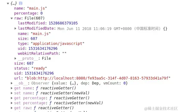 ElementUI on-change 事件函数中获取的 File 对象,下面还有一个 raw 属性对象,功能实现使用 raw 对象