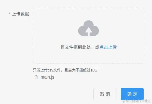 <div class="el-upload__tip line-height-none" slot="tip">只能上传csv文件,且最大不能超过10G</div>