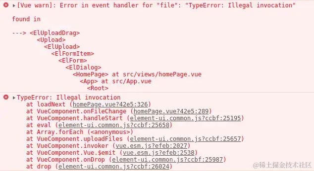 on-change 事件中的获取 file 对象不能直接在 blobSlice.call() 中使用,需要使用 file 的原生对象,否则会导致 illegal invocation 错误
