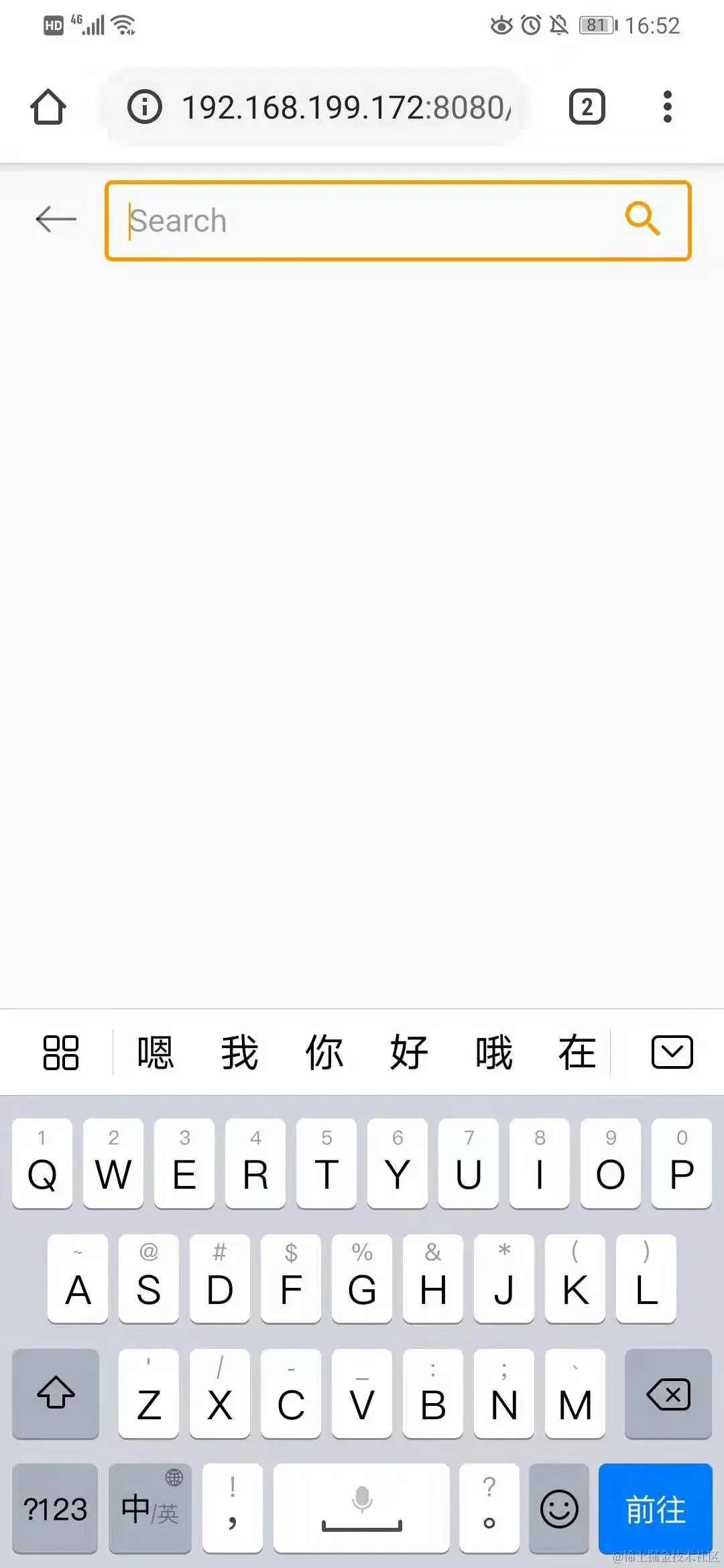 注意 type="search" , 如果不设置, 安卓手机 Chrome 浏览器中打开的软键盘是 前往