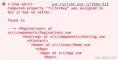 使用了 vuex 中的值来显示内容, 然后报错 [Vue warn]: Computed property "filterKey" was assigned to but it has no setter.