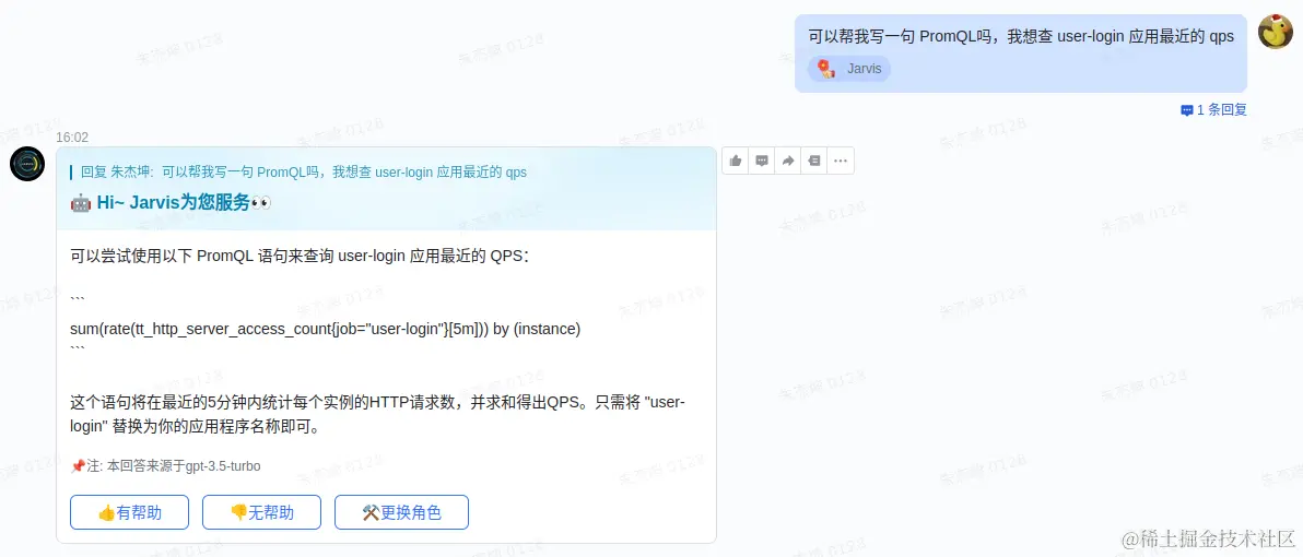 2023 年有一件事很多公司都在做:提供基于 AIGC 的机器人。对于开发者来说 PromQL 可能并不陌生,但如果不是每天和 Prometheus 或者监控系统打交道,要毫无障碍、不查阅资料写出一条 PromQL 还是有点难度的,包括且不限于:语法关键词忘了、Metric 名字忘了、怎样组合出复杂运算忘了…借助 LLM,大家想达成的效果可能是: