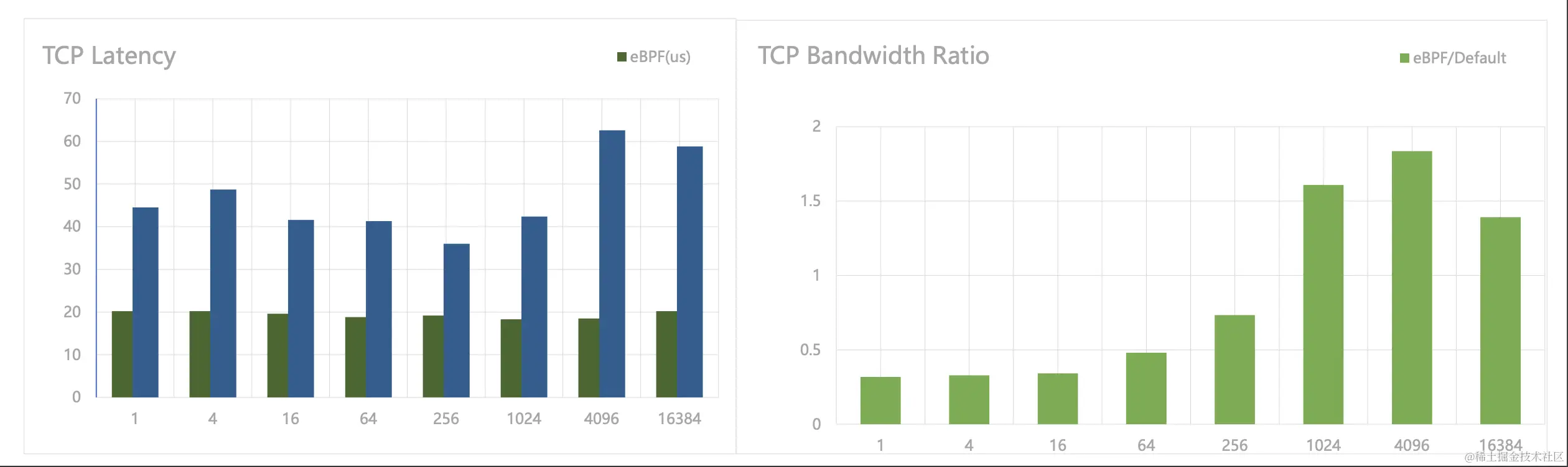从性能测试报告中可以看到,这种优化方案极大地降低了 TCP 延迟,但是在包大小小于 512 Bytes 时会降低整体的吞吐量(优化前后 Ratio < 1),潜在原因是:加速器在绕过网络协议栈的同时也绕过了相关的优化,如对小包的攒批发送。