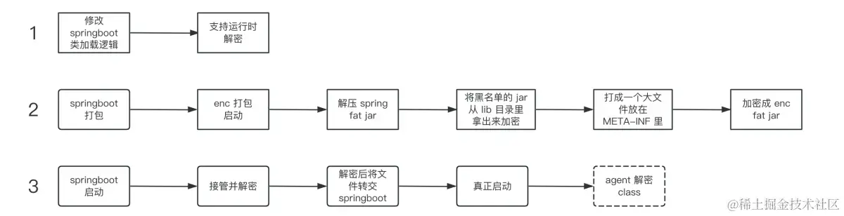 - 解密jar时,将指定目录的 加密包 解密 到指定目录,并将其放入 springboot classloader classpath 里。