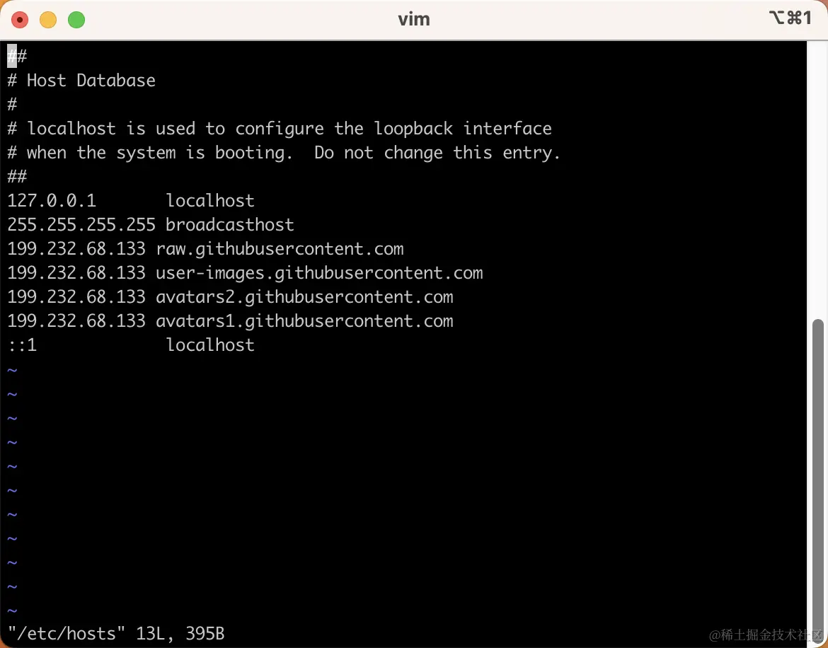 然后按下ESC键,输入:w来保存即可。这个配置不仅可以解决 nvm 的安装问题,还能使加载不了图片的 GitHub页面恢复正常,homebrew 也能装了。然后再输入上面的命令就可以安装nvm了。