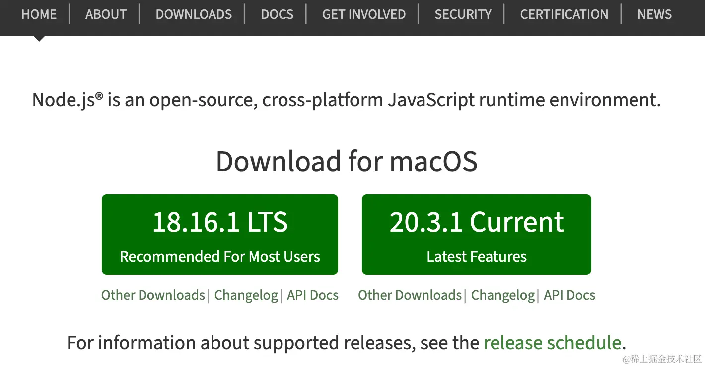 通常我们的项目都是依赖Node.js 环境的,所以第一步就来安装 Node.js。