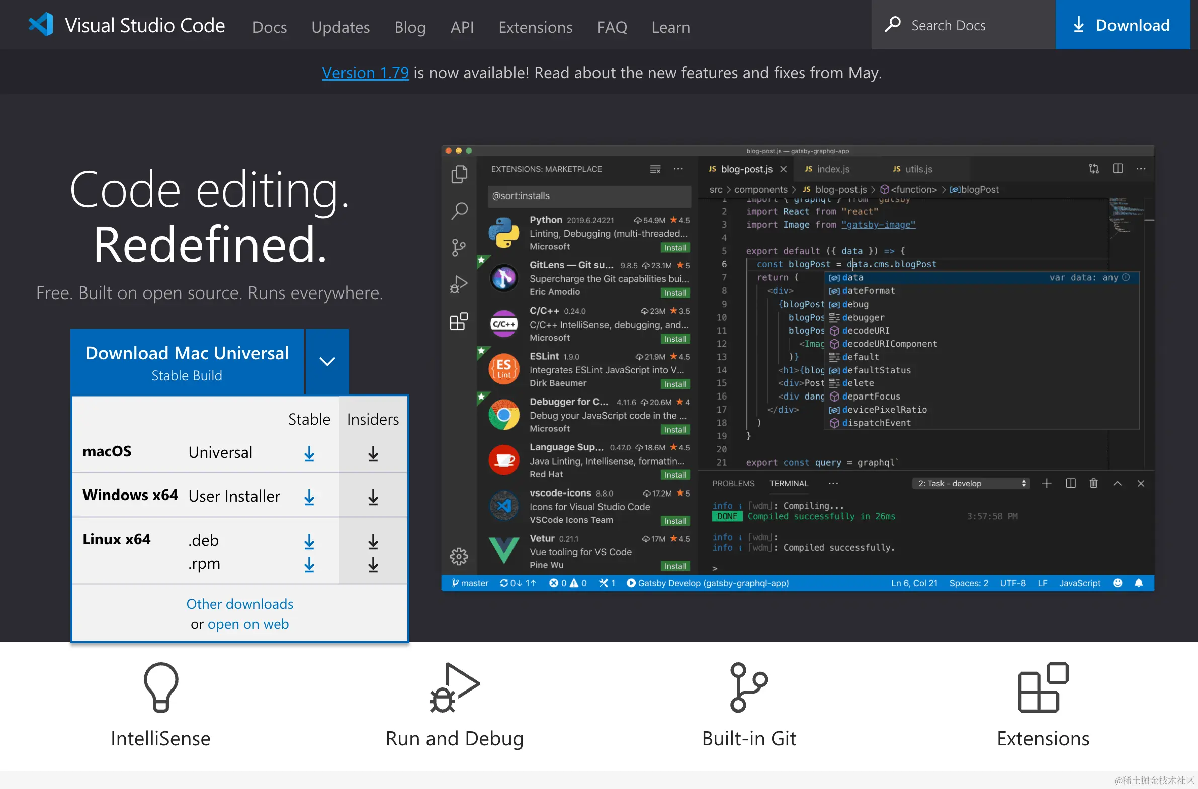 - 强大的编辑功能:VS Code 提供了智能代码补全、语法检查、代码导航、重构等强大的编辑功能,提高了开发效率。