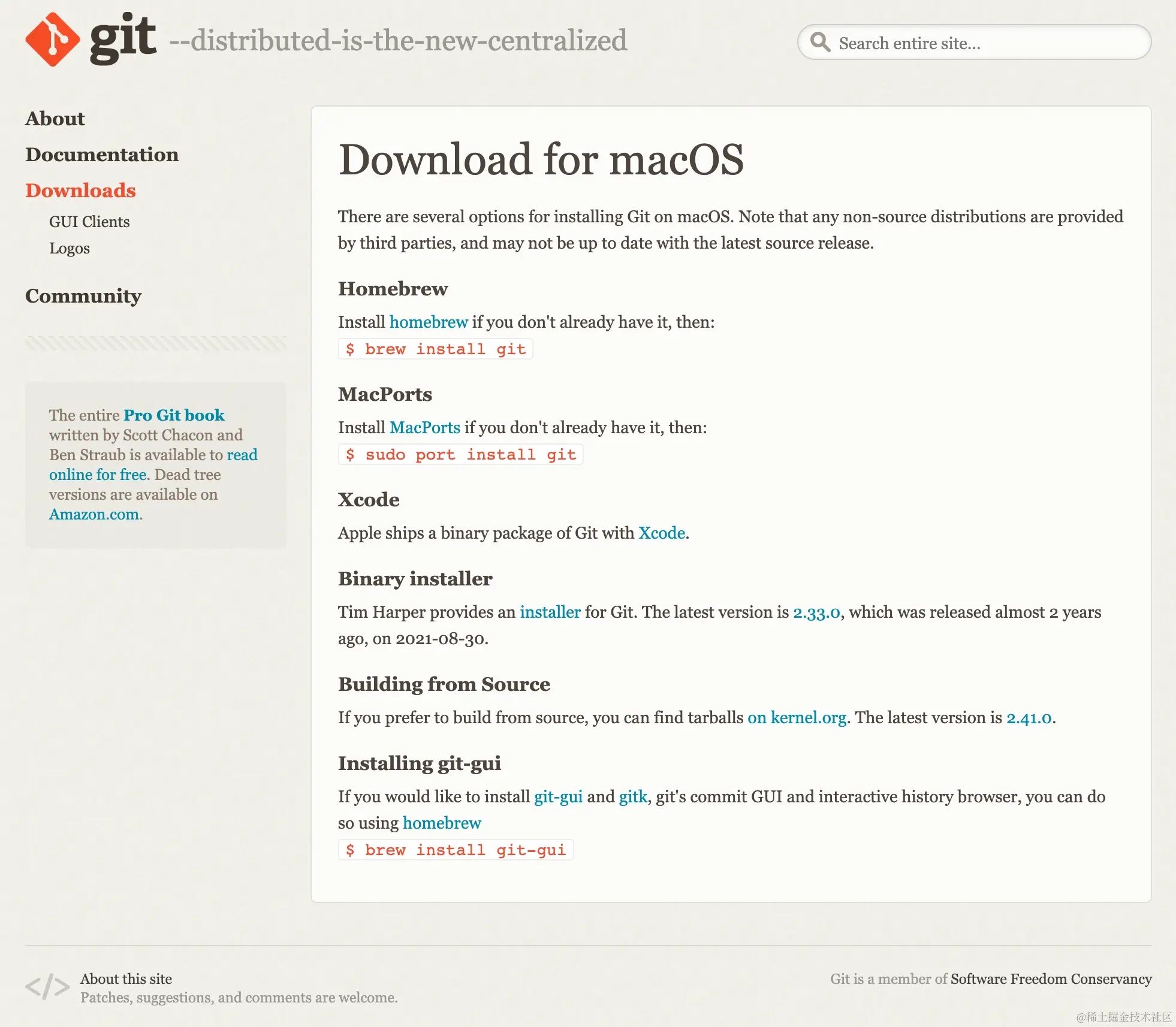 除了上述下载 Git 的方法,Git 官网(**git-scm.com/download/ma… Git 的方法: