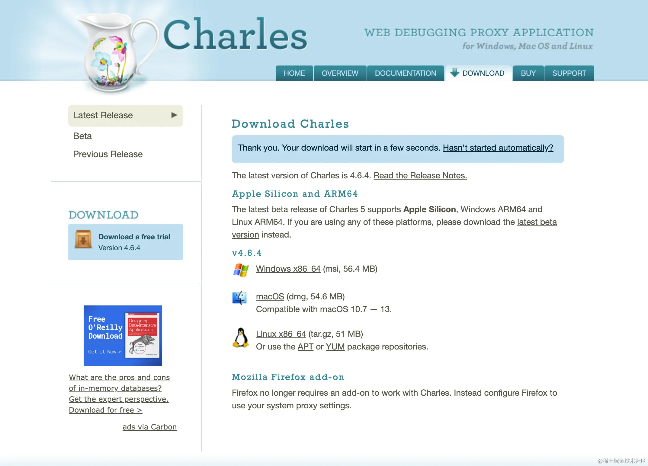首先在官网(**www.charlesproxy.com/latest-rele… Charles,这里根据自己当前的操作系统选择就好了: