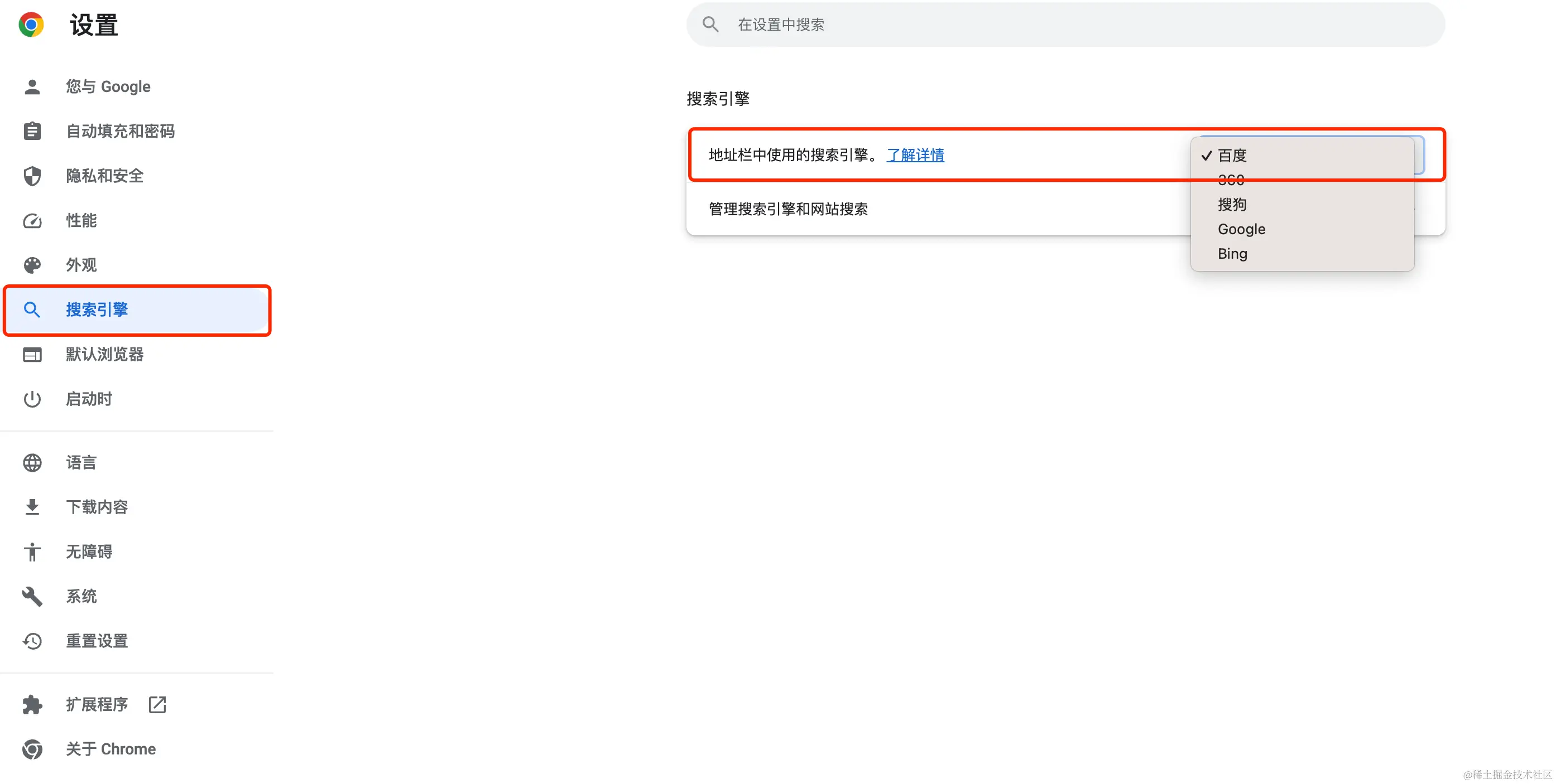 下载完成后,按照提示安装即可。安装完成之后,浏览器的默认搜索引擎是谷歌,如果需要更改,可以在设置中进行配置: