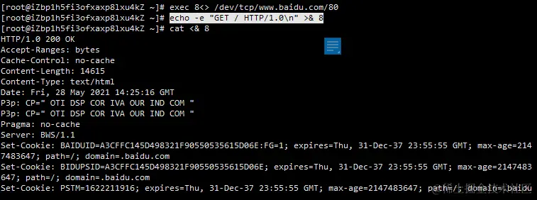 exec 8<> /dev/tcp/www.baidu.com/80