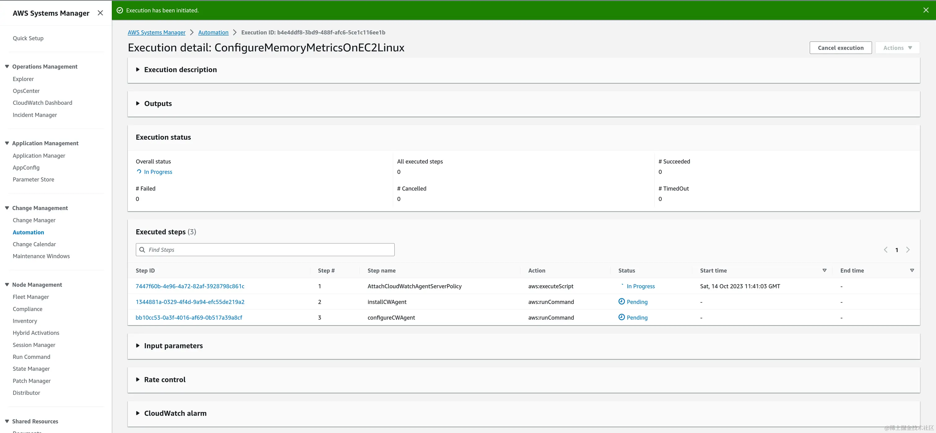 打开AWS Systems Manager->Change Management->Automation