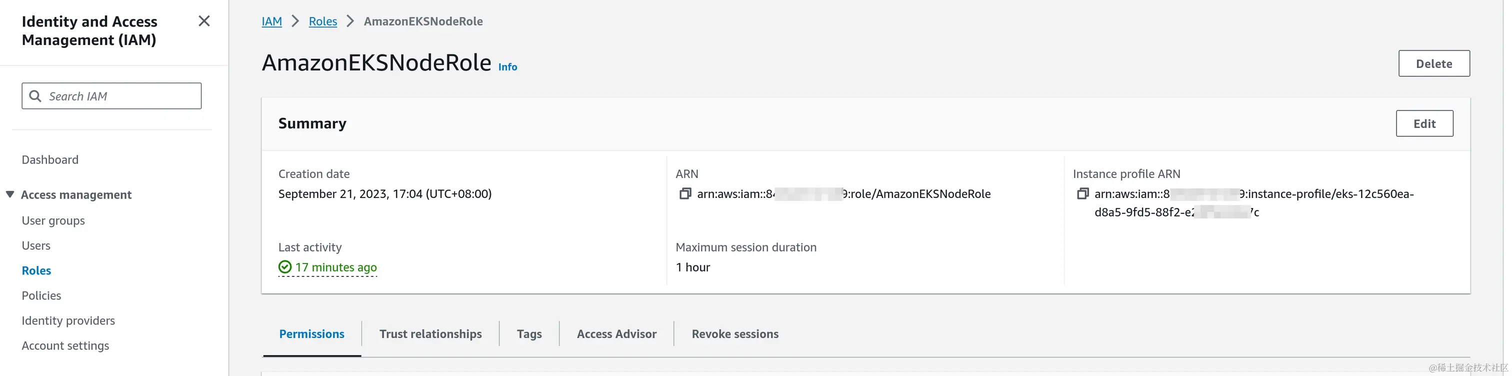 例如我的EKS节点的role和instance profile不一致