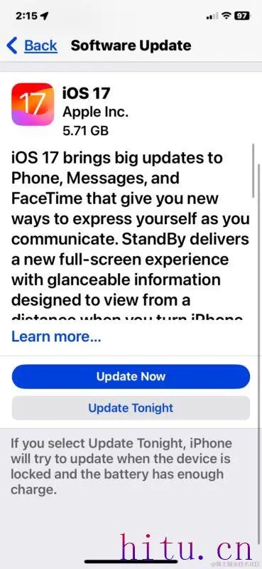 如果你备份了你的iPhone,你现在就可以安装iOS 17更新了。