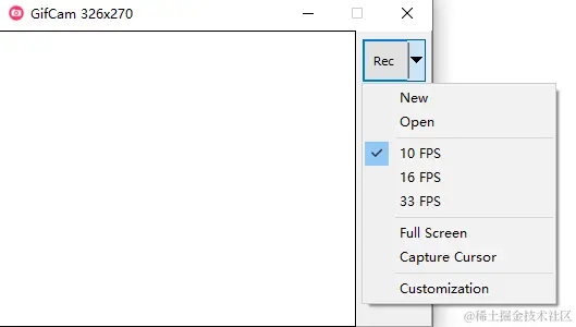 3、正常情况下,我们使用最多的肯定是录制功能,这里可以看到软件提供了三个不同帧数:10、16和33。帧数越高会越流畅,当然副作用就是体积会变大,大家根据需要自行选择。