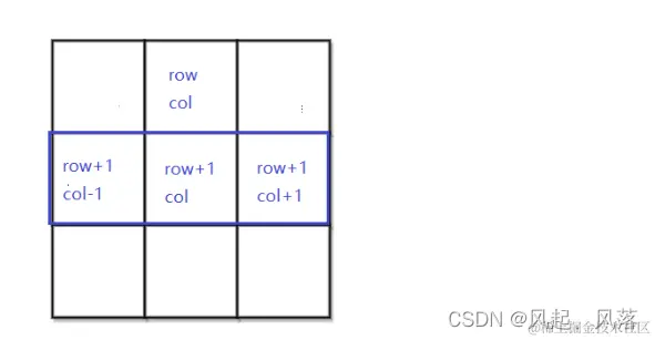 当处于 (row,col)位置处时,下一行 可以选择 (row+1,col)位置 / (row+1,col-1)位置 /(row+1,col+1)位置处的元素