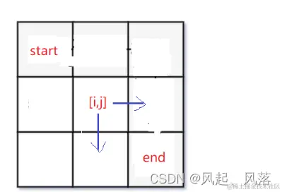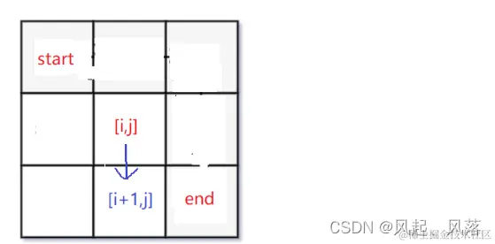 [i,j]位置,可以向下走一步达到[i+1,j]位置 或者 向右 走一步 达到 [i,j+1]位置