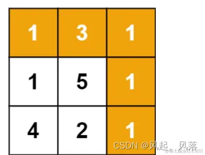 每次只能向下或者 向右走 从左上角 到右下角 的路径 中 寻找 最小路径和 图中最小路径为: 1+3+1+1+1=7
