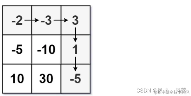 将前两个房间走出来,就需要 骑士 起始健康点数为6点(健康点数为0就挂掉了),此时骑士健康点数为1点, 当走完第三个房间时 ,骑士加了3点健康点数,变为4点 当走完第四个房间时 ,骑士加了1点健康点数,变为5点 当走完走到最后一个房间时, 损失5点健康点数 ,骑士健康点数为0,直接挂掉了